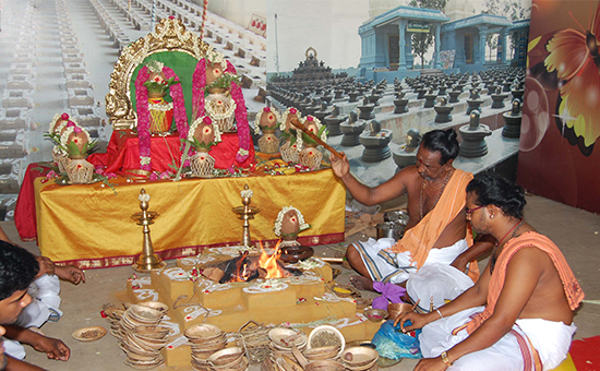 The ambiance of the Jyothishalayam is spiritually charged, with the presence of sacred yantras, energized kalashas, and the continuous chanting of Vedic hymns. Each ritual is conducted in a serene and sanctified environment, allowing participants to feel deeply connected to the divine.